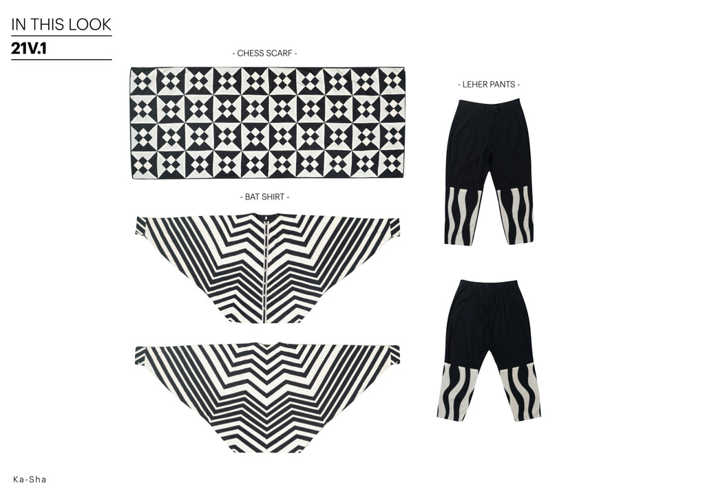 يرجى ملاحظة: تم ارتداء قميص الخفاش مع سترة الصليب ووشاح الشطرنج وبنطلون Leher ، والتي يمكن شراؤها بشكل منفصل.