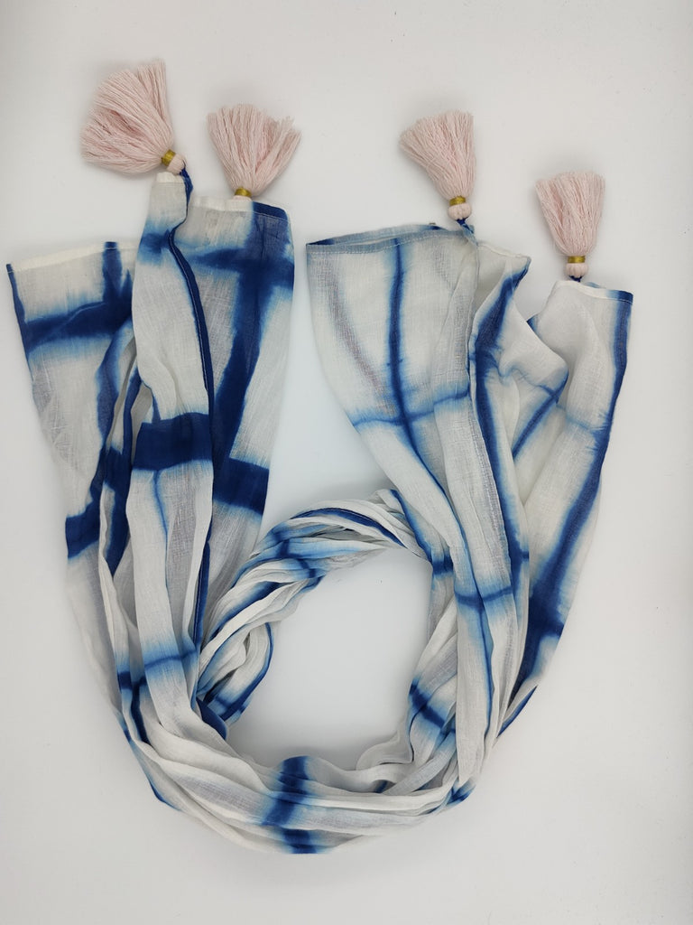وشاحنا المصبوغ بالمشبك مع شرابات على الحواف.