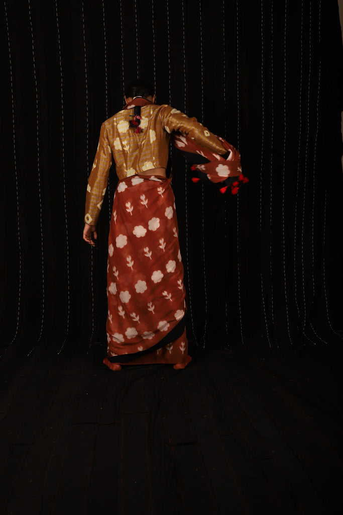 Our cropped bandhani blouse.