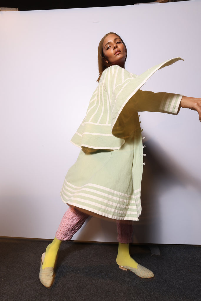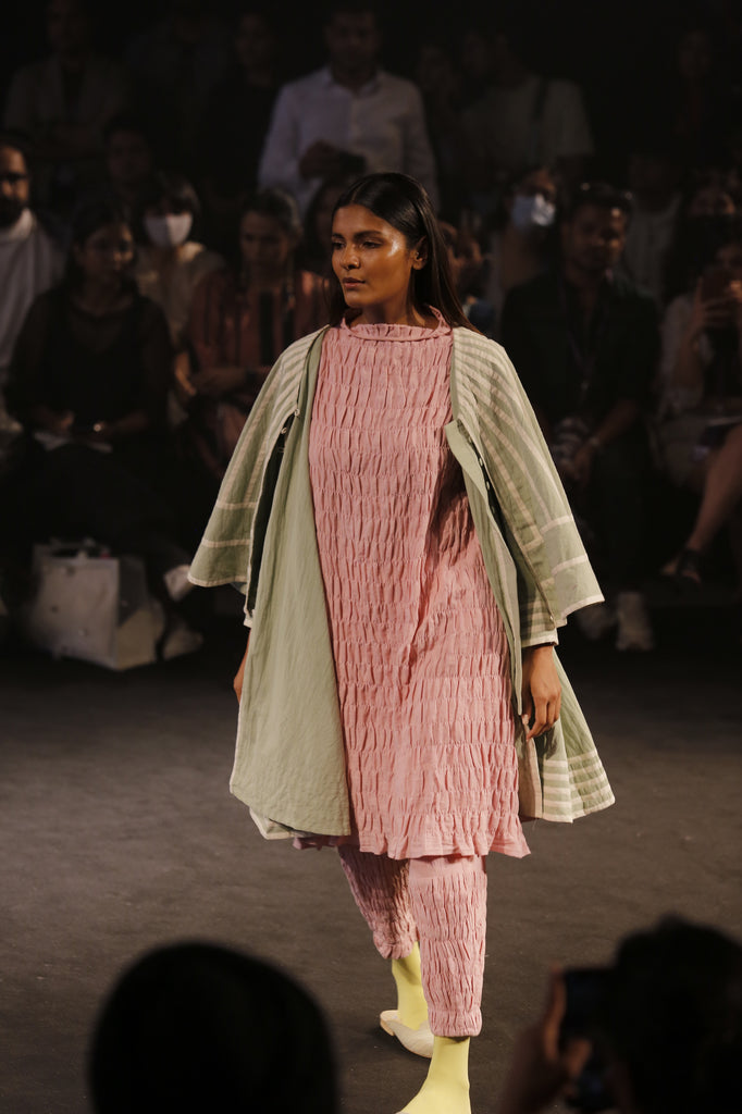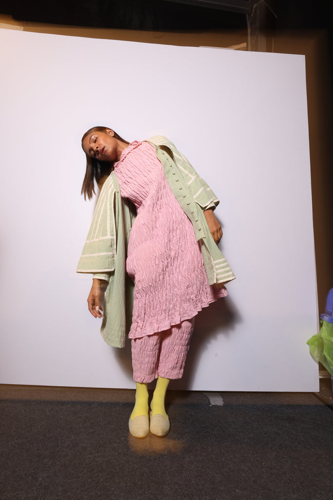 Our Adam Jacket has been worn with our Dimple Tunic and Dimple Pants that can be purchased separately.