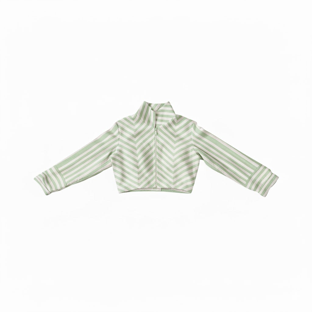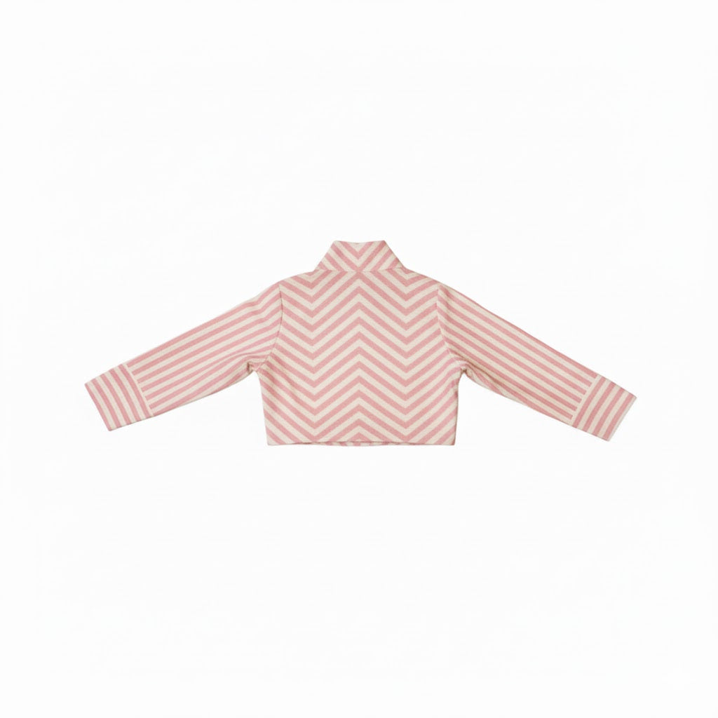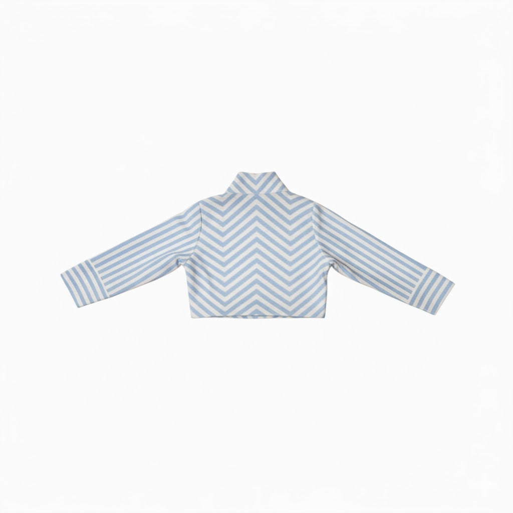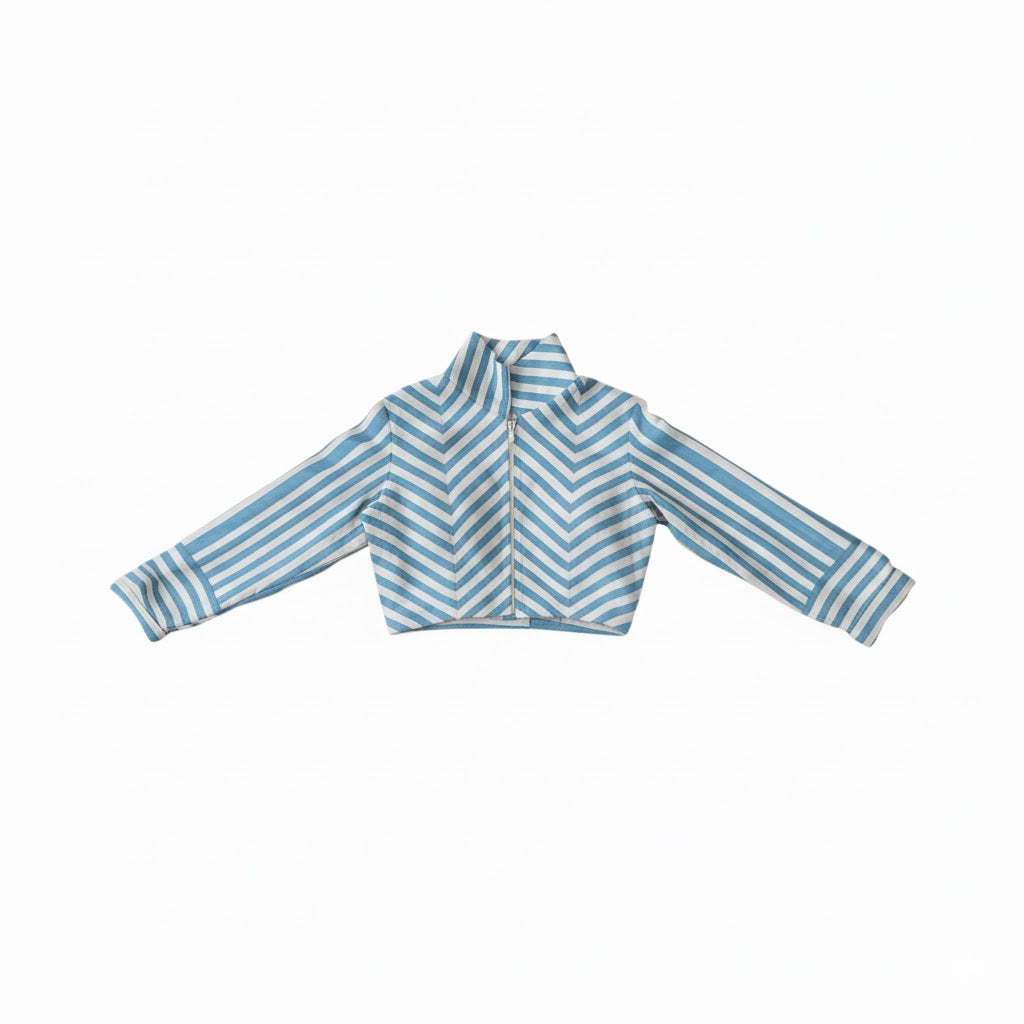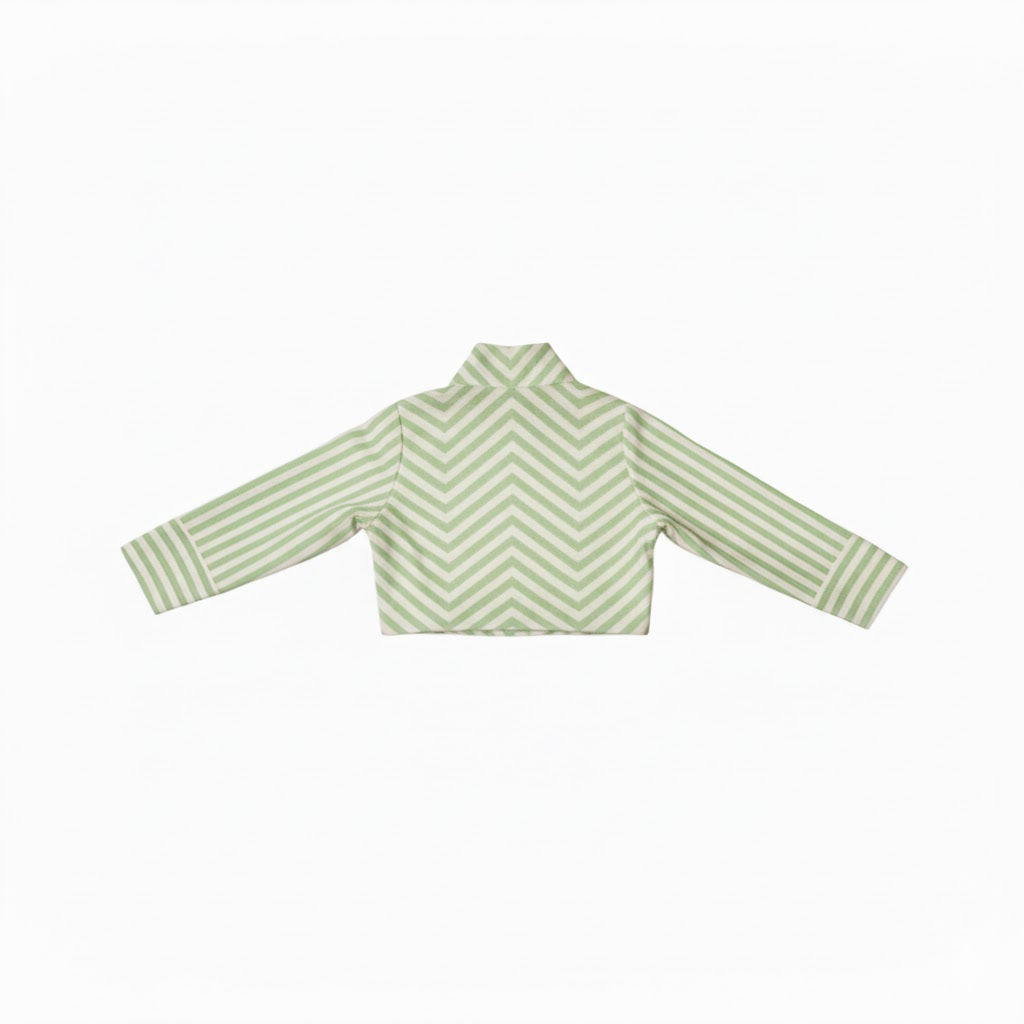 Our Mono-chrome applique patterned crop top with a high neckline.
