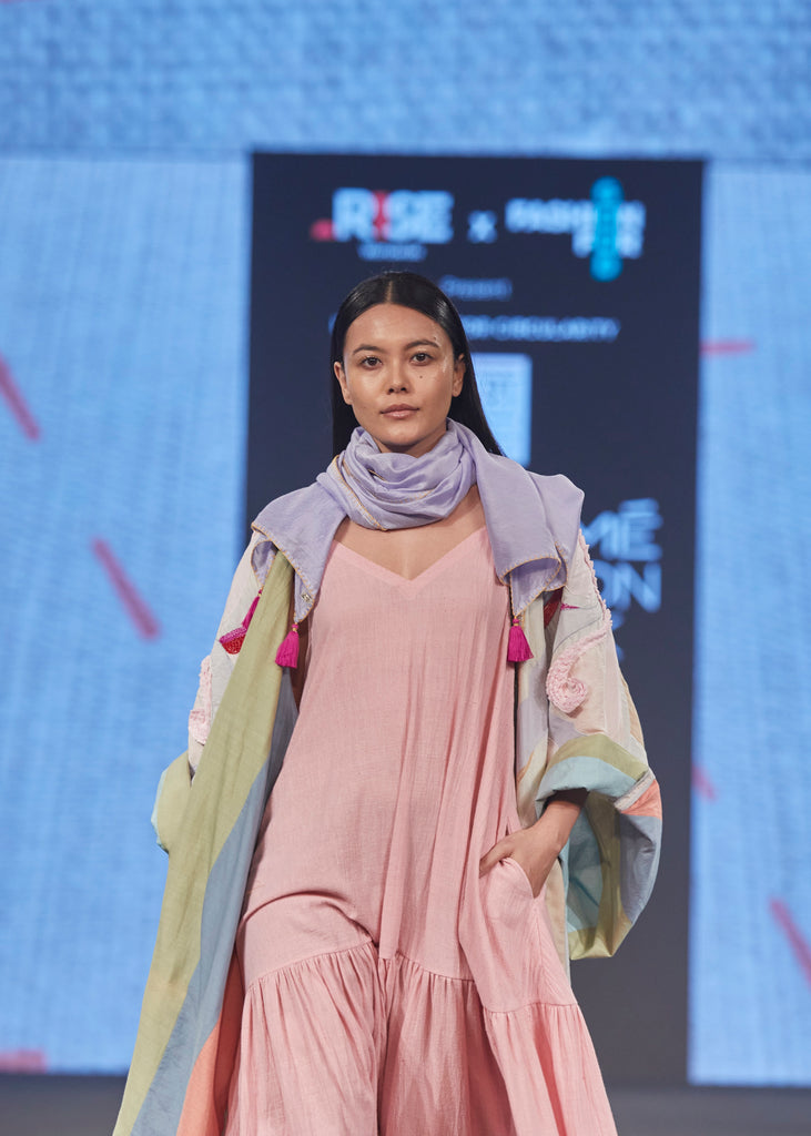 Our Bela Scarf has been worn with our Parva Jacket and Guru Dress that can be purchased separately.