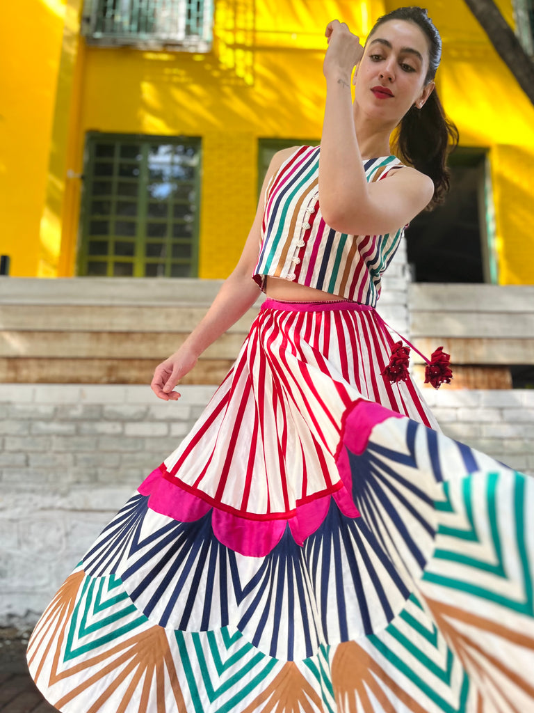 Please note: Our Gulab Skirt can be styled with our Laal Blouse, Shrey Shirt and Tulip Jacket that can be purchased separately.