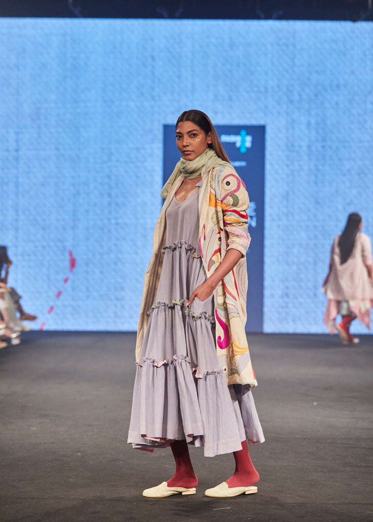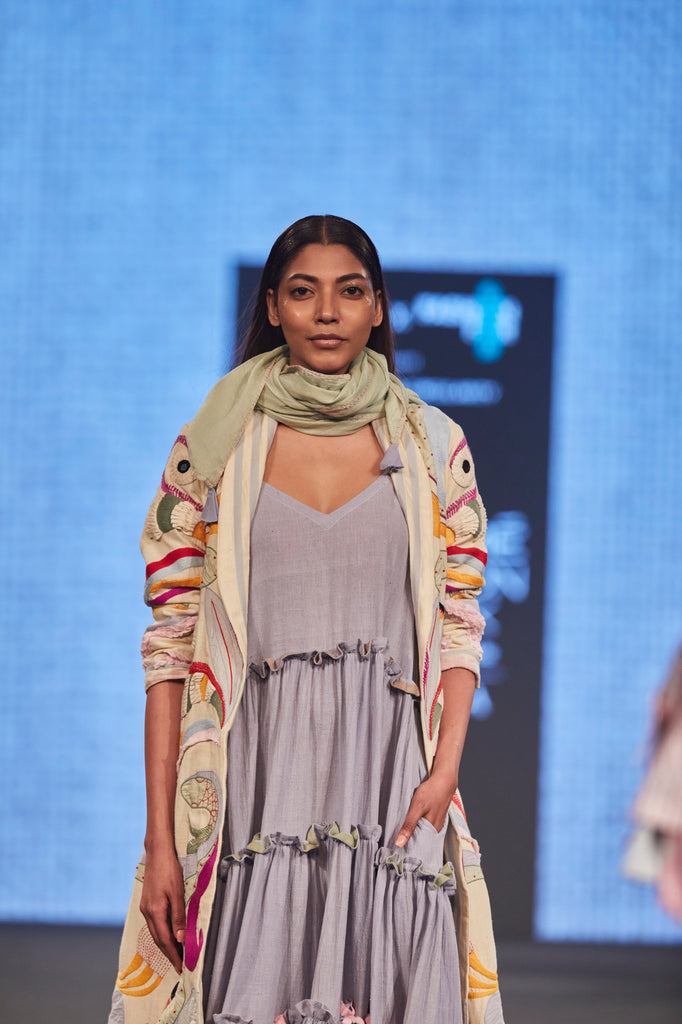 Our Mula Dress has been worn with our Nira Jacket and Hara Scarf that can be purchased separately.