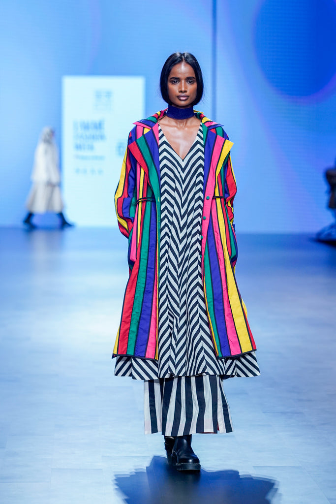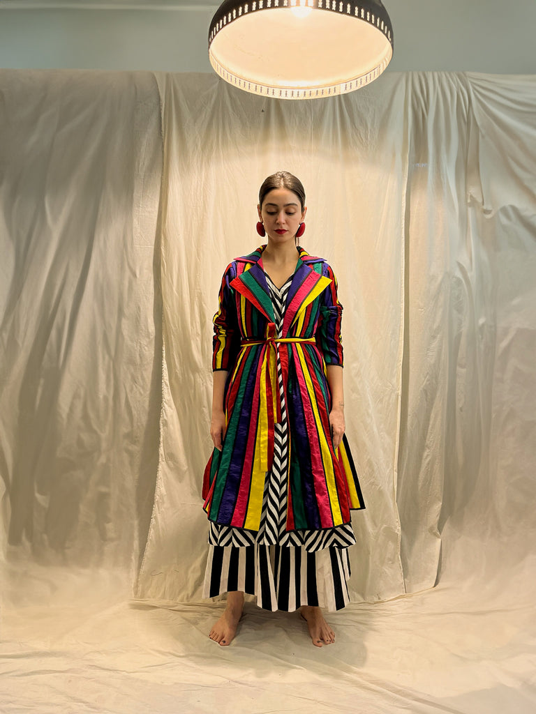 Please note: The Rainbow Trench has been worn with our Plum Dress and Tiger Skirt that can be purchased separately.