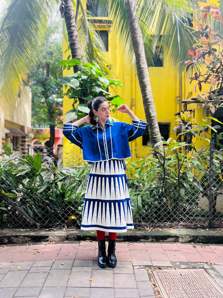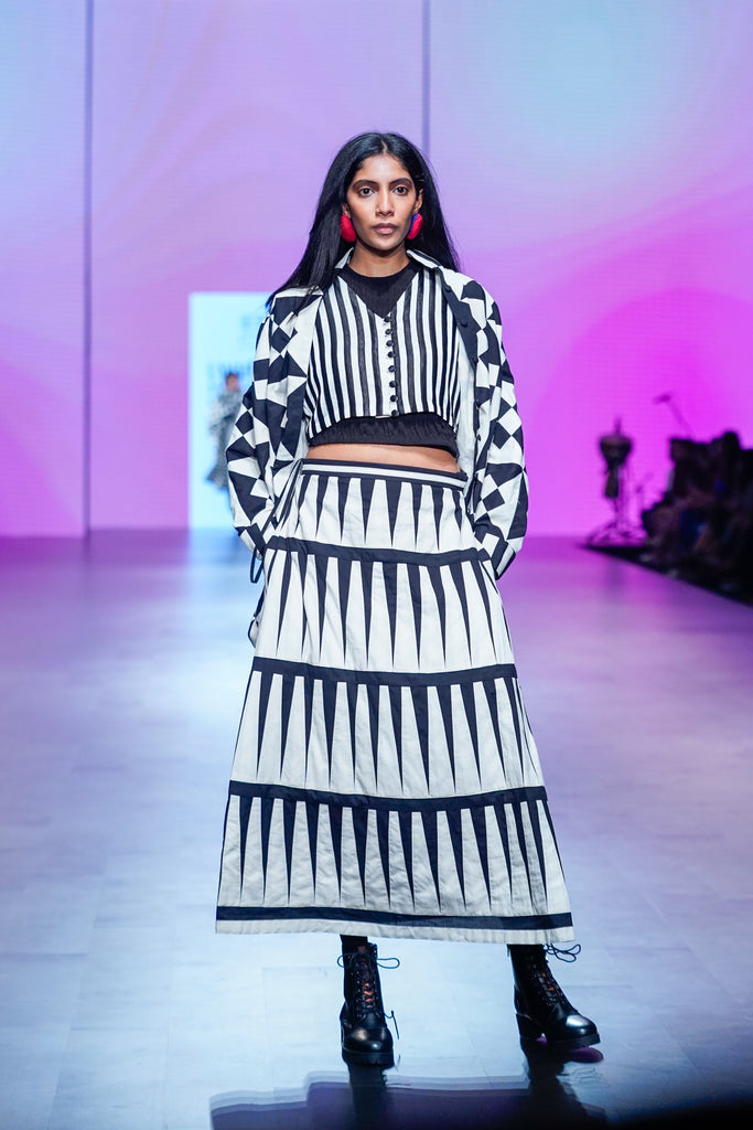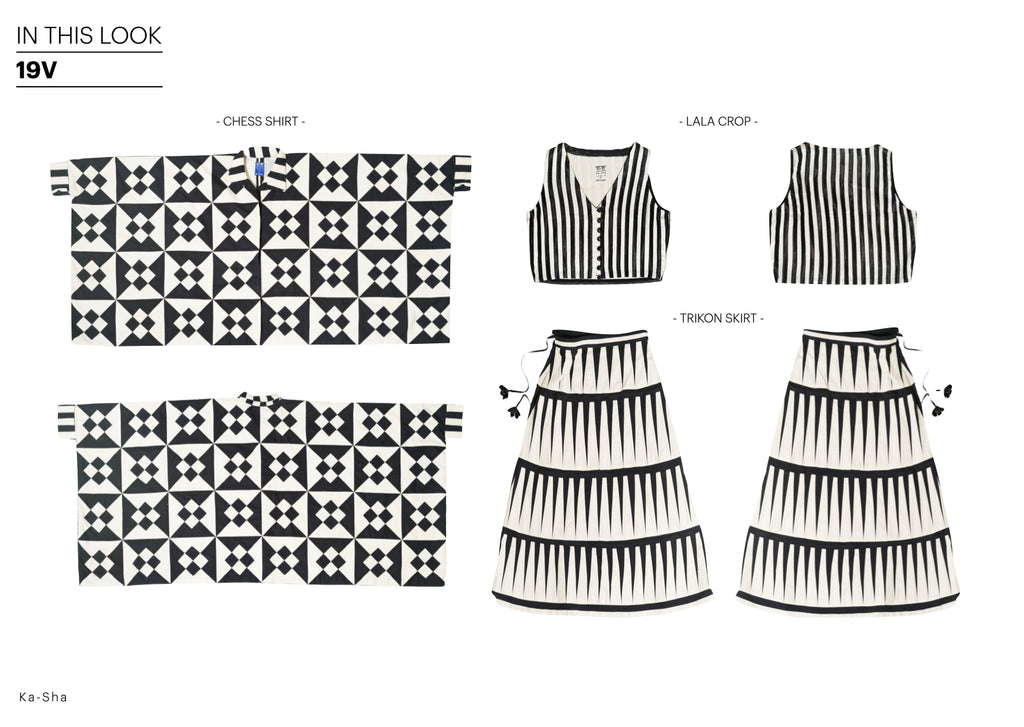Please note: The Trikon Skirt has been worn with our Lala TopChess Shirt and Ruffy Top that can be purchased separately.