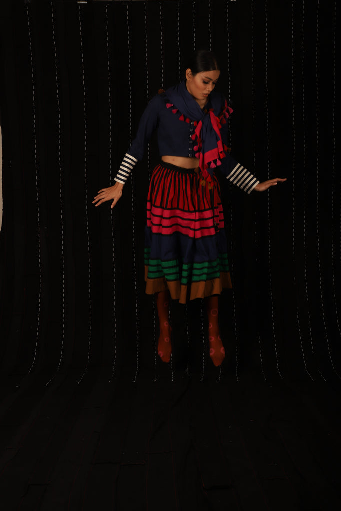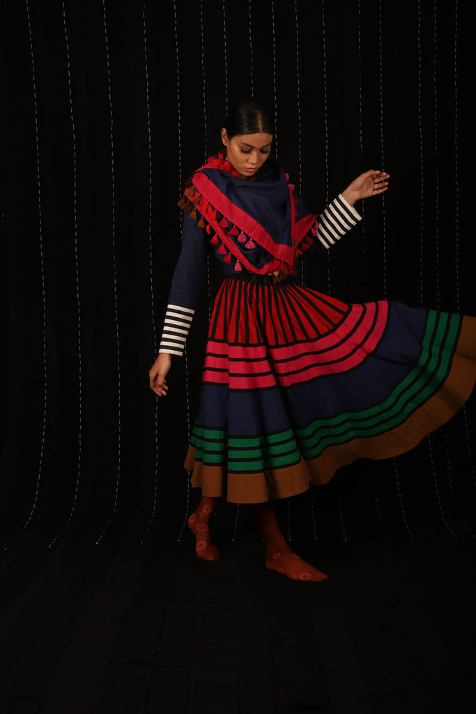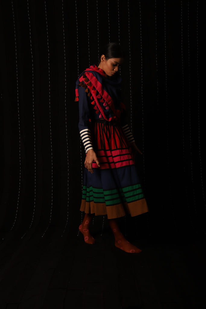 Please note: Our Rangoli Scarf has been worn with our Neel Top and Rangoli Skirt that can be purchased separately.