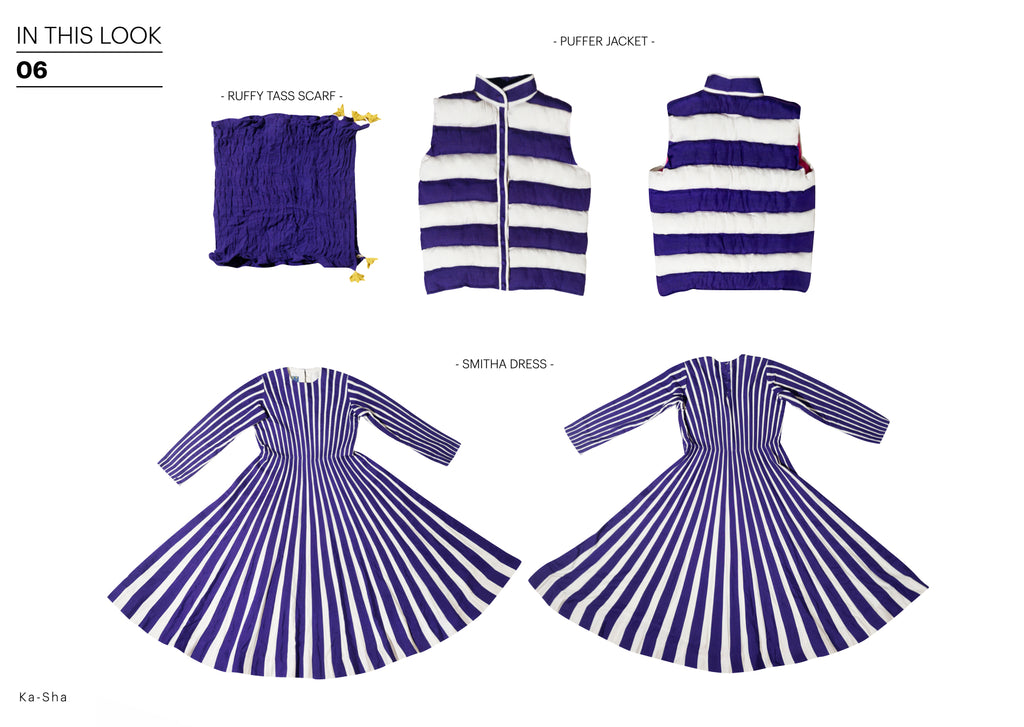 Please note: The Ruffy Tass Scarf has been worn with our Puffer Jacket and Smitha Dress that can be purchased separately.