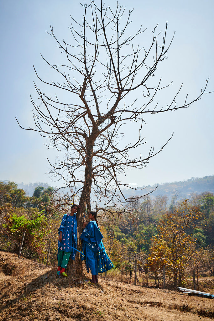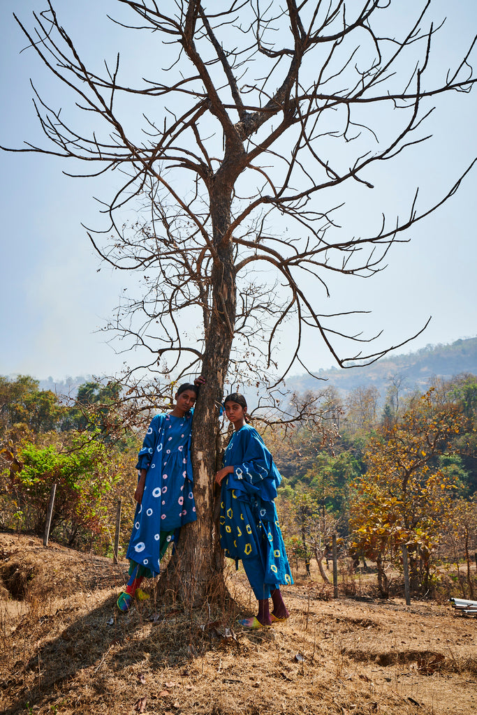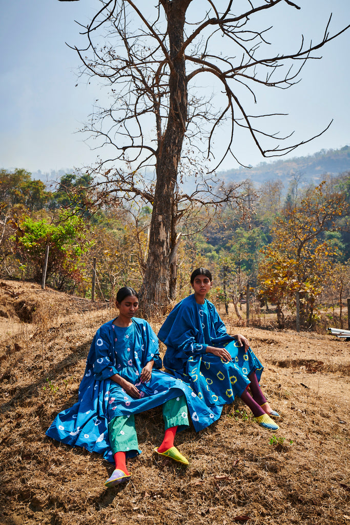 Our resist dye and bandhni shift dress.