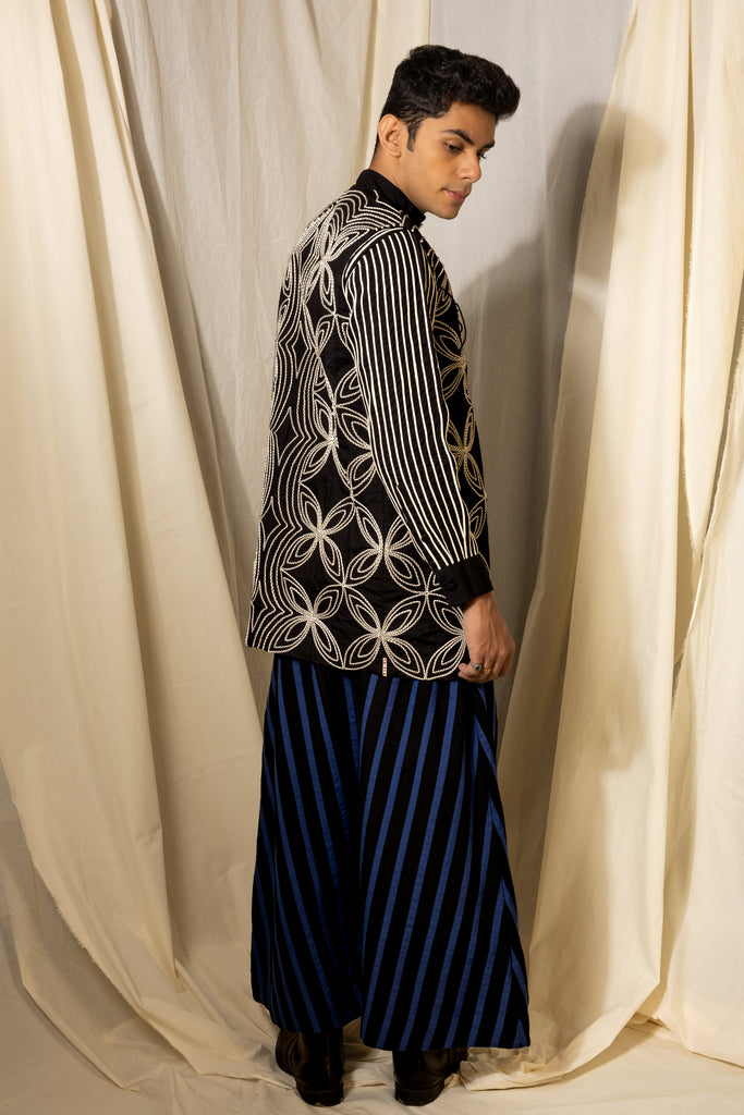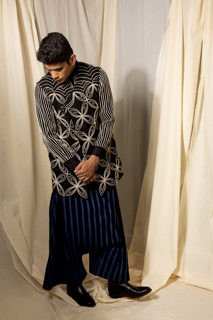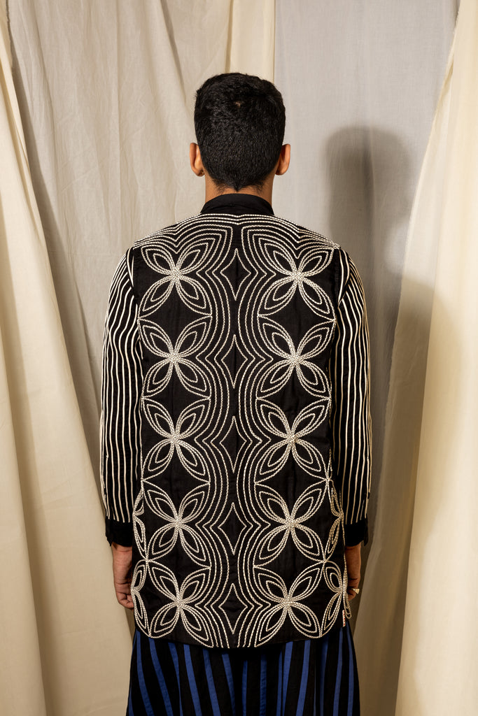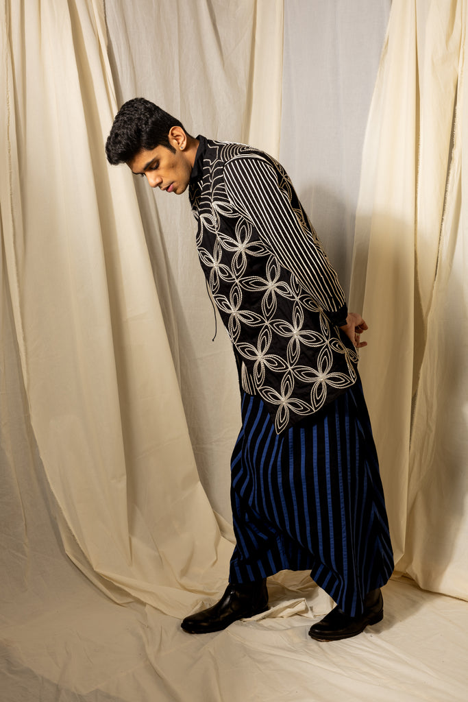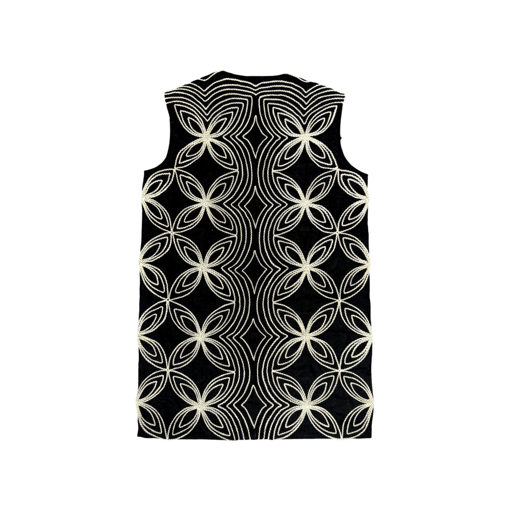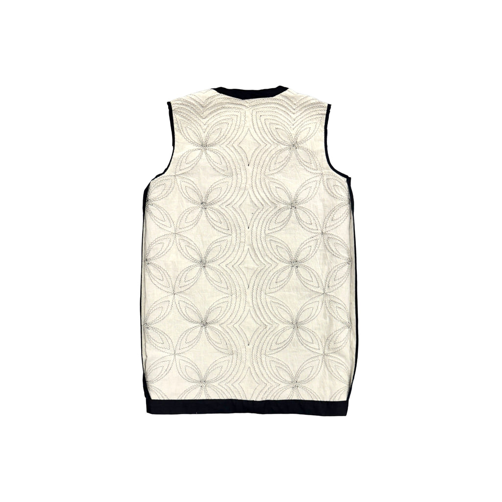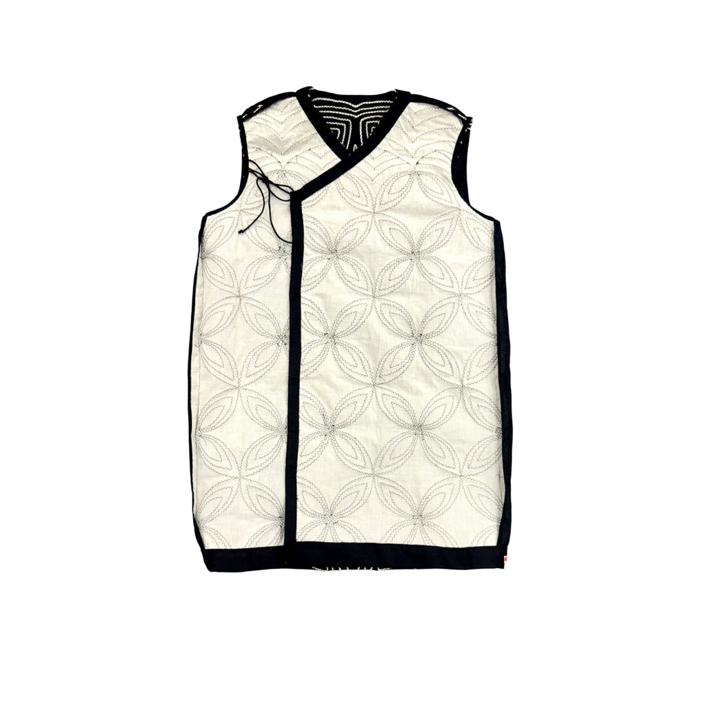 Our overlapping chorded and hand embroidered reversible unisex waistcoat.