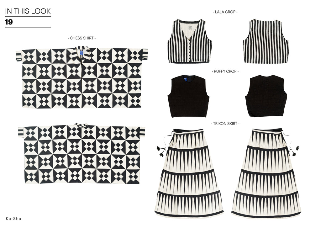 Please note: The Ruffy Top has been worn with our Lala Top, Trikon Skirt and Chess Shirt that can be purchased separately.