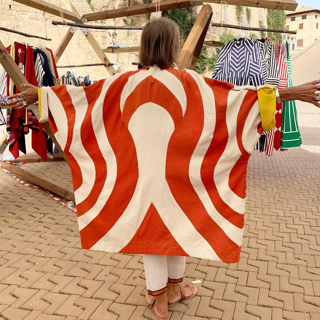 For our Clamp Dyed, Dip Dyed and any other pieces with more than one color, we recommend dry cleaning as the first wash as the products have multiple colours and dye techniques.